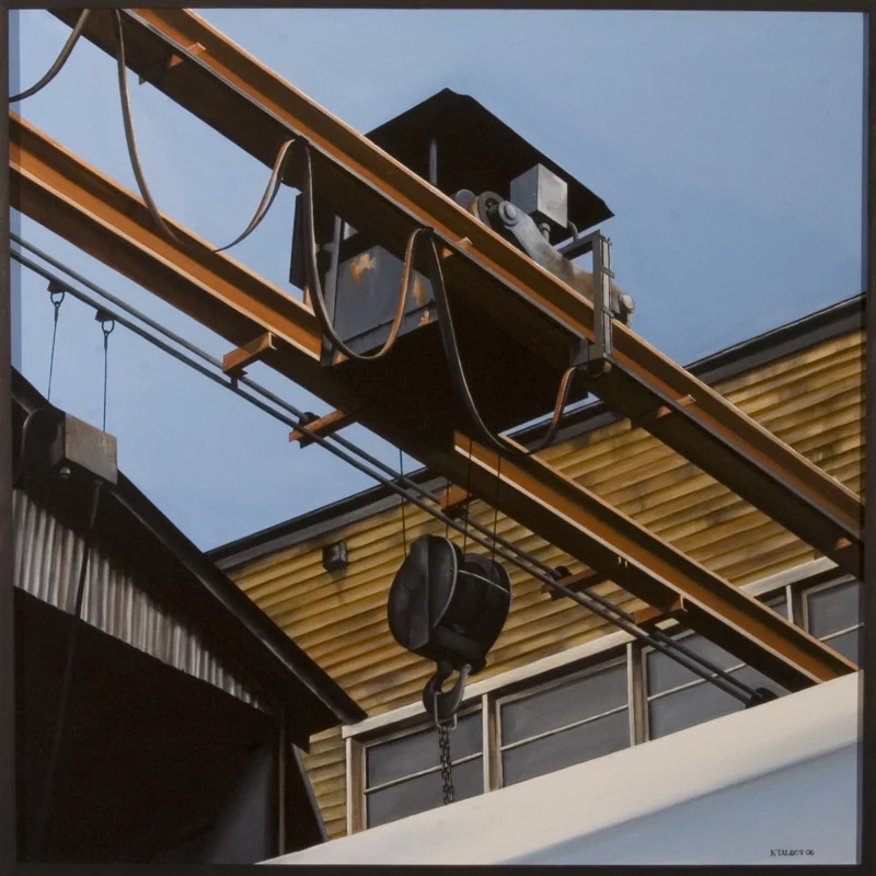 Robert Henri, an early American painter and teacher, believed that the artist was a manual worker of images and that that made him one with the city and its people. He wanted his students to learn from Walt Whitman and embrace the city. In a "Song for Occupations" Whitman writes: "...The work and tools of the rigger, grappler, sail-maker... In them realities for you and me, in them poems for you and me..." For me, there is beauty in machinery and architecture. Workers do not appear in the paintings, but are felt through their tools and creations. These objects become more beautiful with time.