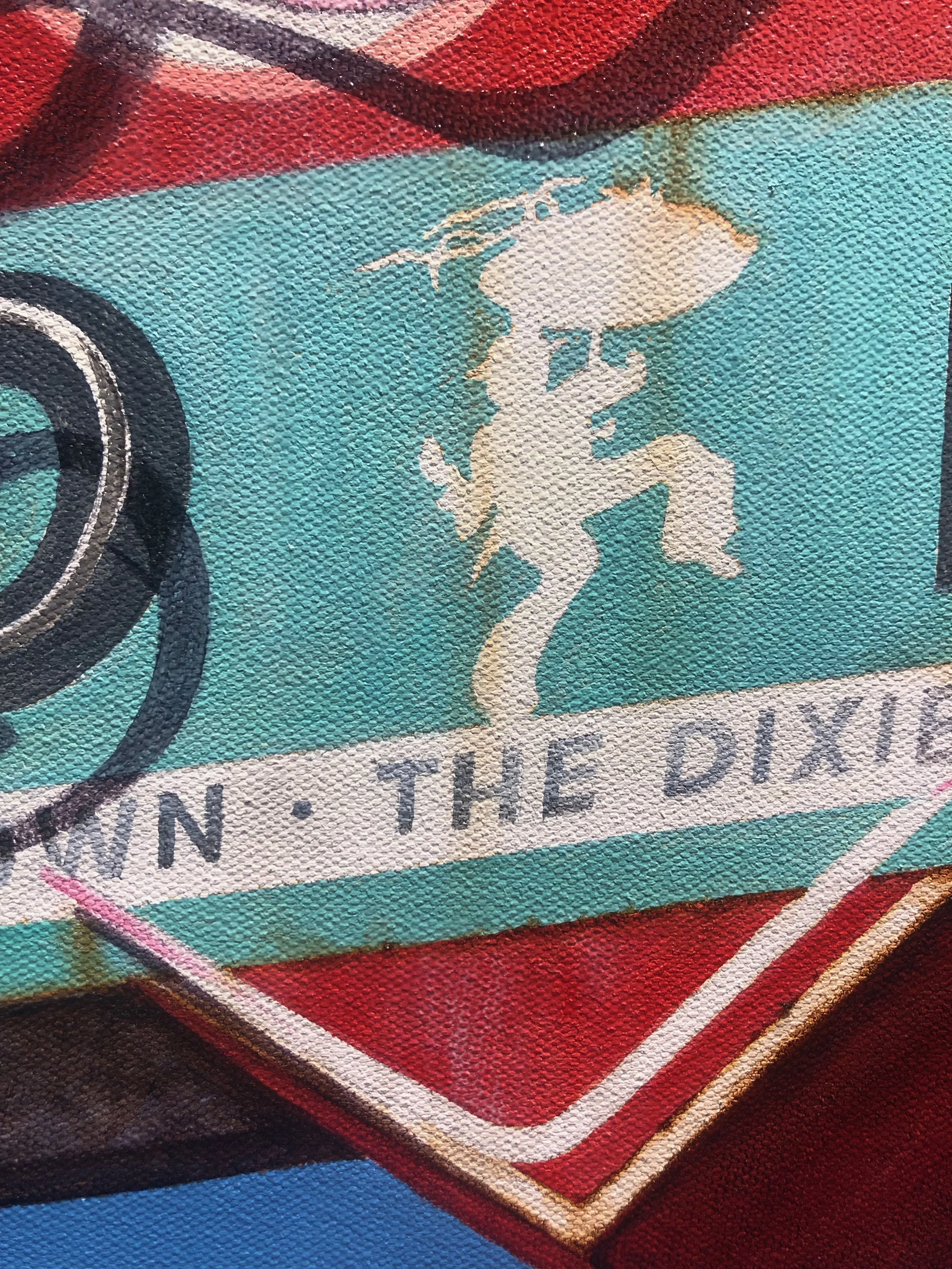 Painting the portraits was an added challenge. There are often people in signs I paint so this helped guide my plan. I had to think like a sign maker. I had to paint them as if someone had actually painted the sign. There wouldn’t be any detailed shading or sculpting as in a normal portrait. I needed to render these as a flat surface.